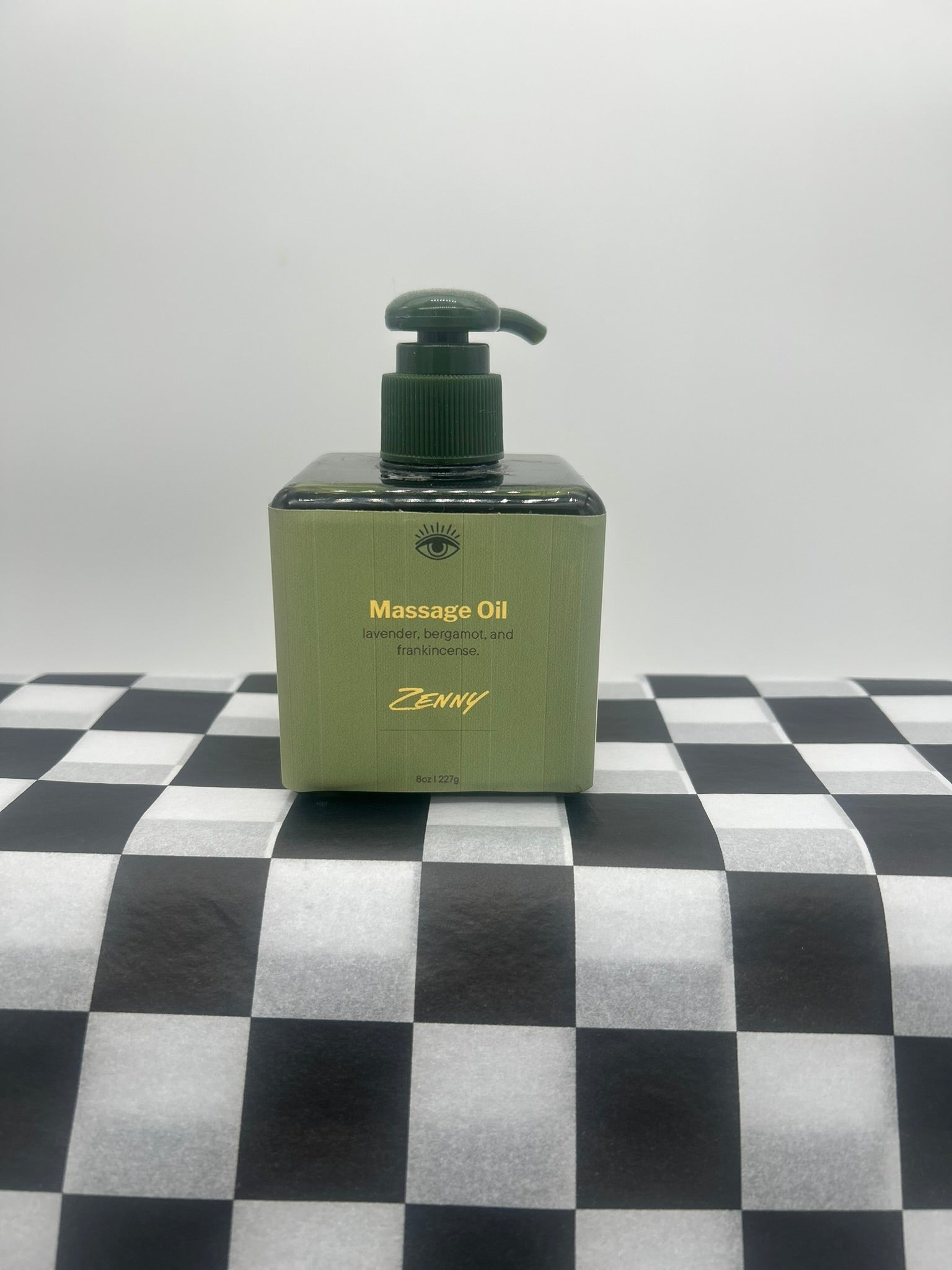 Our zenny Massage Oil is packaged in an 8oz pump bottle.